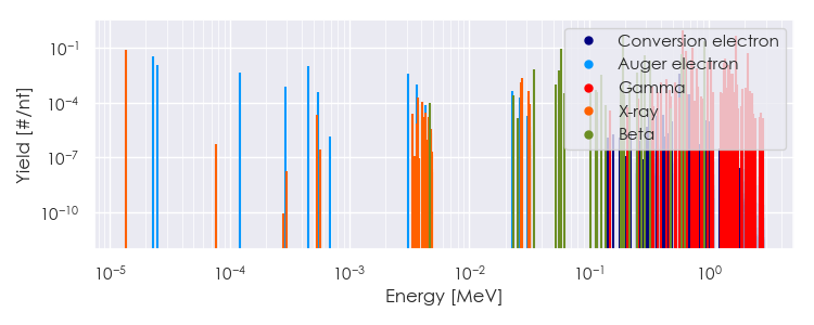 Spectra source: ICRP Publication 107: Nuclear Decay Data for Dosimetric Calculations. Ann. ICRP 2008, 38 (3).
