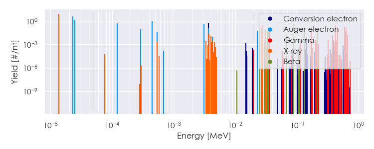 Spectra source: ICRP Publication 107: Nuclear Decay Data for Dosimetric Calculations. Ann. ICRP 2008, 38 (3).
