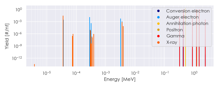 Spectra source: ICRP Publication 107: Nuclear Decay Data for Dosimetric Calculations. Ann. ICRP 2008, 38 (3).