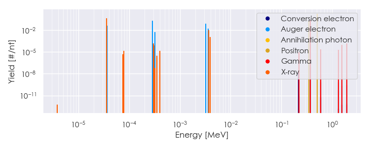 Spectra source: ICRP Publication 107: Nuclear Decay Data for Dosimetric Calculations. Ann. ICRP 2008, 38 (3).