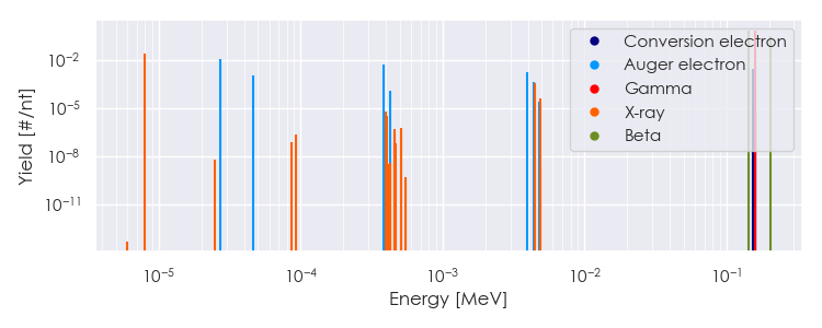 Spectra source: ICRP Publication 107: Nuclear Decay Data for Dosimetric Calculations. Ann. ICRP 2008, 38 (3).