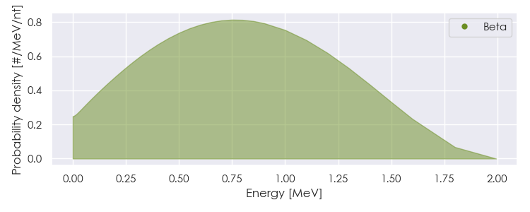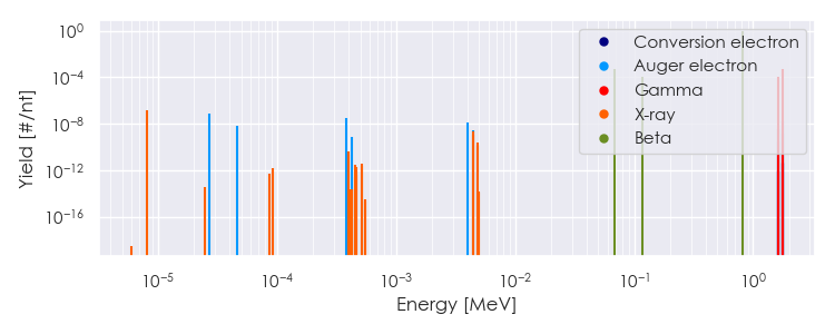 Spectra source: ICRP Publication 107: Nuclear Decay Data for Dosimetric Calculations. Ann. ICRP 2008, 38 (3).