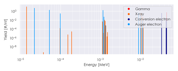 Spectra source: ICRP Publication 107: Nuclear Decay Data for Dosimetric Calculations. Ann. ICRP 2008, 38 (3).