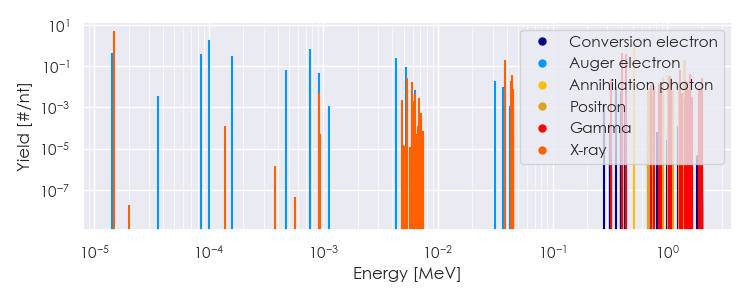 Spectra source: ICRP Publication 107: Nuclear Decay Data for Dosimetric Calculations. Ann. ICRP 2008, 38 (3).