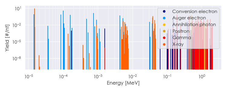 Spectra source: ICRP Publication 107: Nuclear Decay Data for Dosimetric Calculations. Ann. ICRP 2008, 38 (3).