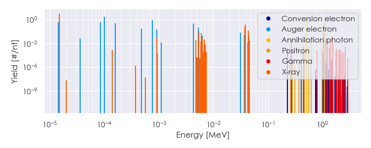 Spectra source: ICRP Publication 107: Nuclear Decay Data for Dosimetric Calculations. Ann. ICRP 2008, 38 (3).