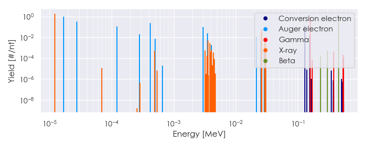 Spectra source: ICRP Publication 107: Nuclear Decay Data for Dosimetric Calculations. Ann. ICRP 2008, 38 (3).
