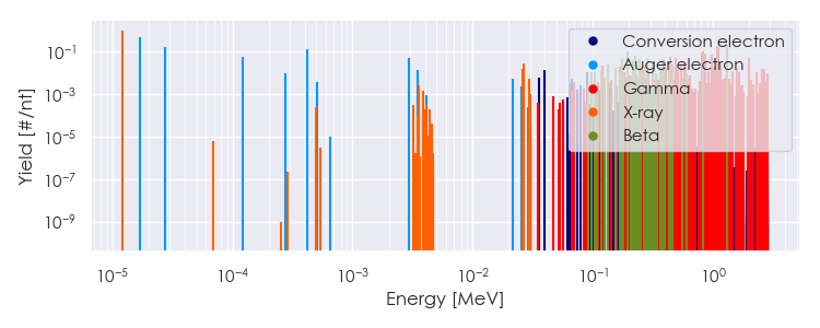 Spectra source: ICRP Publication 107: Nuclear Decay Data for Dosimetric Calculations. Ann. ICRP 2008, 38 (3).