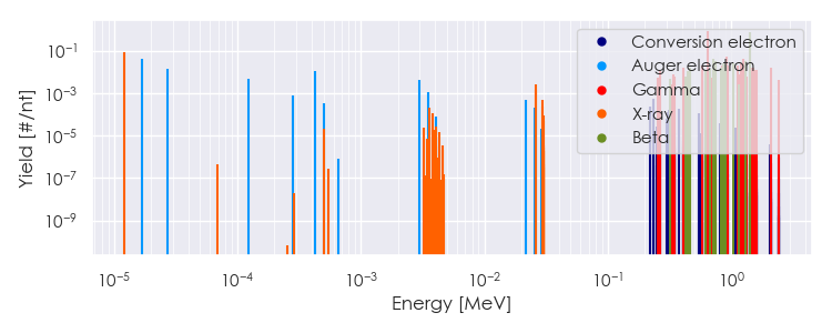Spectra source: ICRP Publication 107: Nuclear Decay Data for Dosimetric Calculations. Ann. ICRP 2008, 38 (3).
