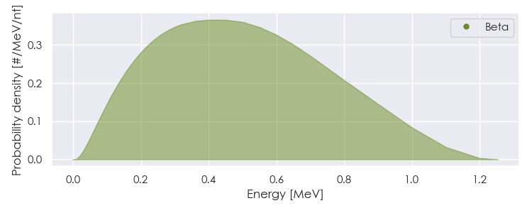 Spectra source: ICRP Publication 107: Nuclear Decay Data for Dosimetric Calculations. Ann. ICRP 2008, 38 (3).