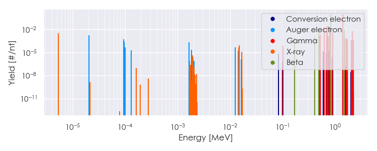 Spectra source: ICRP Publication 107: Nuclear Decay Data for Dosimetric Calculations. Ann. ICRP 2008, 38 (3).