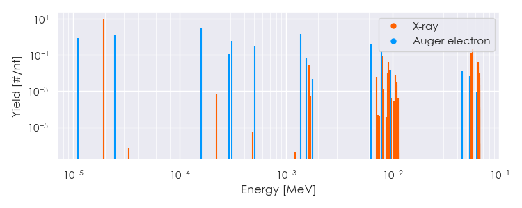 Spectra source: ICRP Publication 107: Nuclear Decay Data for Dosimetric Calculations. Ann. ICRP 2008, 38 (3).