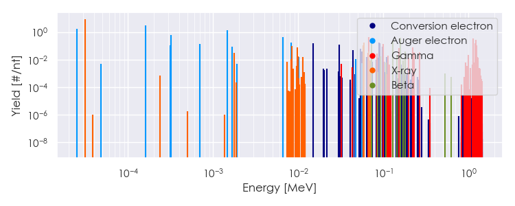 Spectra source: ICRP Publication 107: Nuclear Decay Data for Dosimetric Calculations. Ann. ICRP 2008, 38 (3).