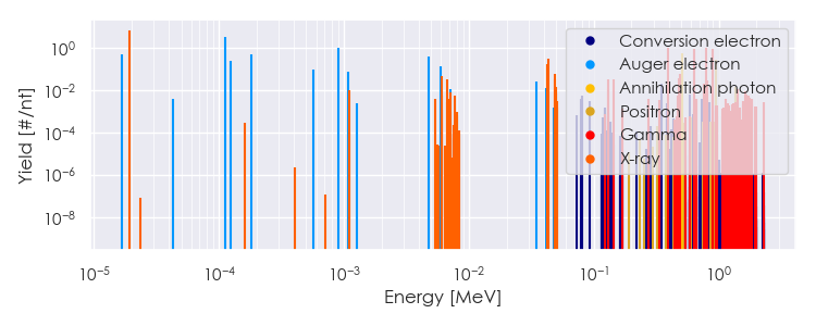 Spectra source: ICRP Publication 107: Nuclear Decay Data for Dosimetric Calculations. Ann. ICRP 2008, 38 (3).