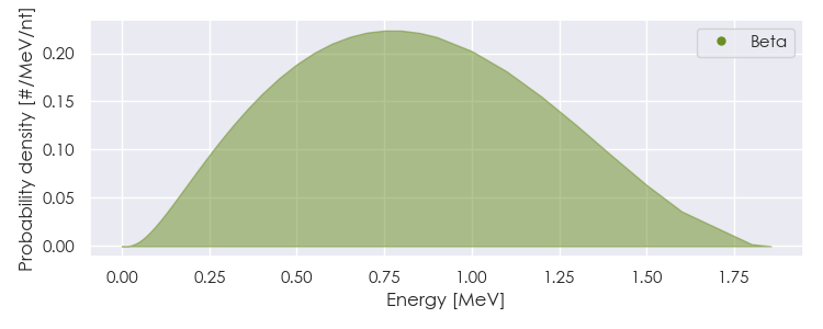 Spectra source: ICRP Publication 107: Nuclear Decay Data for Dosimetric Calculations. Ann. ICRP 2008, 38 (3).