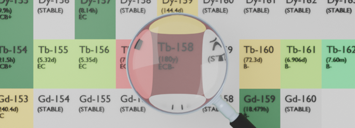 Daughters: Gd-158 (83.4%), Dy-158 (16.6%)