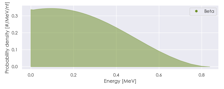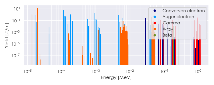 Spectra source: ICRP Publication 107: Nuclear Decay Data for Dosimetric Calculations. Ann. ICRP 2008, 38 (3).