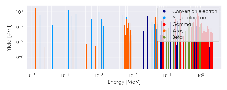 Spectra source: ICRP Publication 107: Nuclear Decay Data for Dosimetric Calculations. Ann. ICRP 2008, 38 (3).