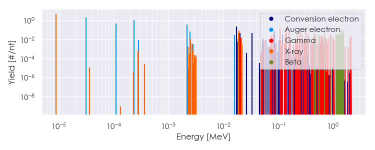 Spectra source: ICRP Publication 107: Nuclear Decay Data for Dosimetric Calculations. Ann. ICRP 2008, 38 (3).