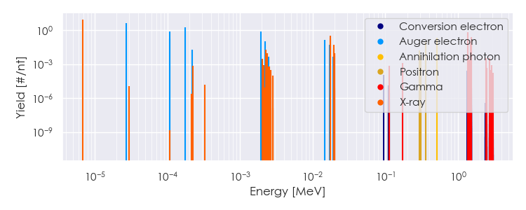 Spectra source: ICRP Publication 107: Nuclear Decay Data for Dosimetric Calculations. Ann. ICRP 2008, 38 (3).