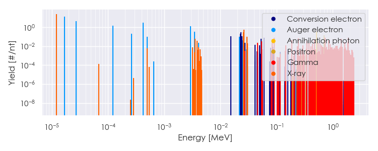 Spectra source: ICRP Publication 107: Nuclear Decay Data for Dosimetric Calculations. Ann. ICRP 2008, 38 (3).