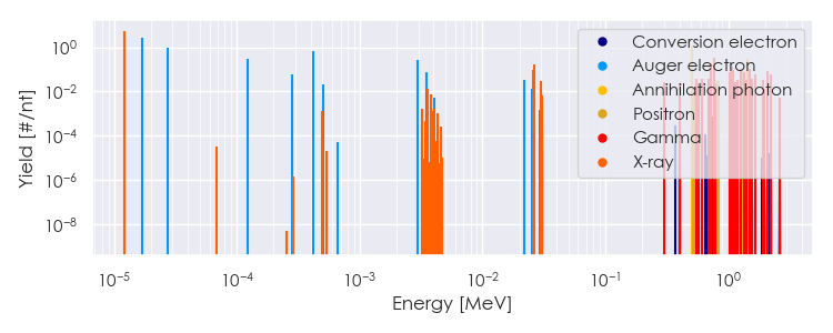 Spectra source: ICRP Publication 107: Nuclear Decay Data for Dosimetric Calculations. Ann. ICRP 2008, 38 (3).