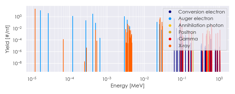Spectra source: ICRP Publication 107: Nuclear Decay Data for Dosimetric Calculations. Ann. ICRP 2008, 38 (3).