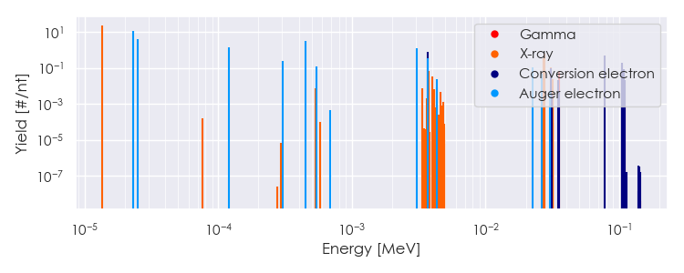 Spectra source: ICRP Publication 107: Nuclear Decay Data for Dosimetric Calculations. Ann. ICRP 2008, 38 (3).