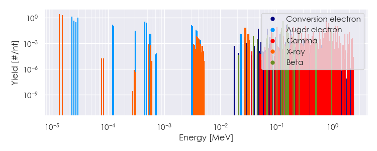 Spectra source: ICRP Publication 107: Nuclear Decay Data for Dosimetric Calculations. Ann. ICRP 2008, 38 (3).