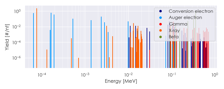 Spectra source: ICRP Publication 107: Nuclear Decay Data for Dosimetric Calculations. Ann. ICRP 2008, 38 (3).