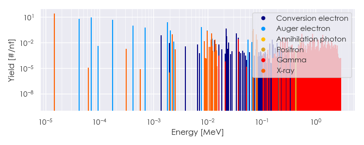 Spectra source: ICRP Publication 107: Nuclear Decay Data for Dosimetric Calculations. Ann. ICRP 2008, 38 (3).