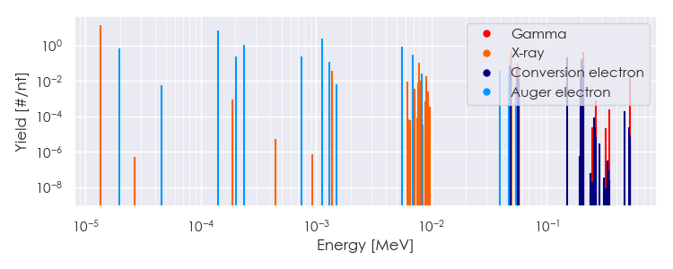 Spectra source: ICRP Publication 107: Nuclear Decay Data for Dosimetric Calculations. Ann. ICRP 2008, 38 (3).