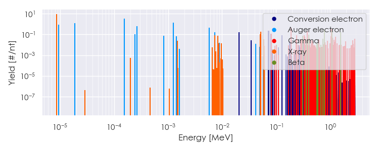 Spectra source: ICRP Publication 107: Nuclear Decay Data for Dosimetric Calculations. Ann. ICRP 2008, 38 (3).
