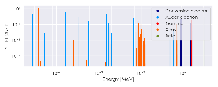 Spectra source: ICRP Publication 107: Nuclear Decay Data for Dosimetric Calculations. Ann. ICRP 2008, 38 (3).