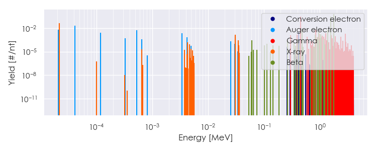 Spectra source: ICRP Publication 107: Nuclear Decay Data for Dosimetric Calculations. Ann. ICRP 2008, 38 (3).
