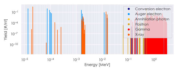 Spectra source: ICRP Publication 107: Nuclear Decay Data for Dosimetric Calculations. Ann. ICRP 2008, 38 (3).
