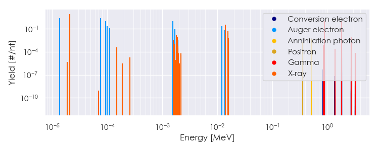 Spectra source: ICRP Publication 107: Nuclear Decay Data for Dosimetric Calculations. Ann. ICRP 2008, 38 (3).