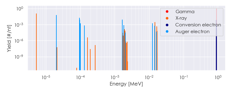 Spectra source: ICRP Publication 107: Nuclear Decay Data for Dosimetric Calculations. Ann. ICRP 2008, 38 (3).