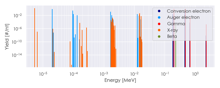 Spectra source: ICRP Publication 107: Nuclear Decay Data for Dosimetric Calculations. Ann. ICRP 2008, 38 (3).