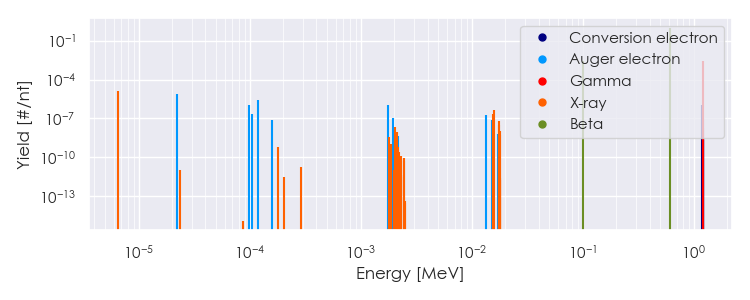 Spectra source: ICRP Publication 107: Nuclear Decay Data for Dosimetric Calculations. Ann. ICRP 2008, 38 (3).