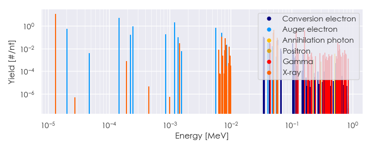 Spectra source: ICRP Publication 107: Nuclear Decay Data for Dosimetric Calculations. Ann. ICRP 2008, 38 (3).