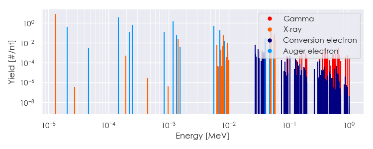 Spectra source: ICRP Publication 107: Nuclear Decay Data for Dosimetric Calculations. Ann. ICRP 2008, 38 (3).