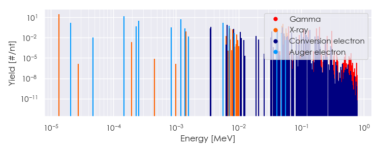 Spectra source: ICRP Publication 107: Nuclear Decay Data for Dosimetric Calculations. Ann. ICRP 2008, 38 (3).