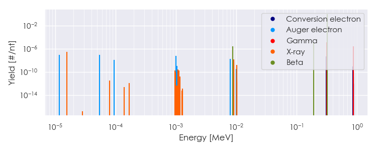 Spectra source: ICRP Publication 107: Nuclear Decay Data for Dosimetric Calculations. Ann. ICRP 2008, 38 (3).