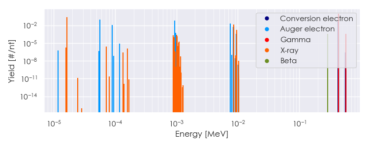 Spectra source: ICRP Publication 107: Nuclear Decay Data for Dosimetric Calculations. Ann. ICRP 2008, 38 (3).