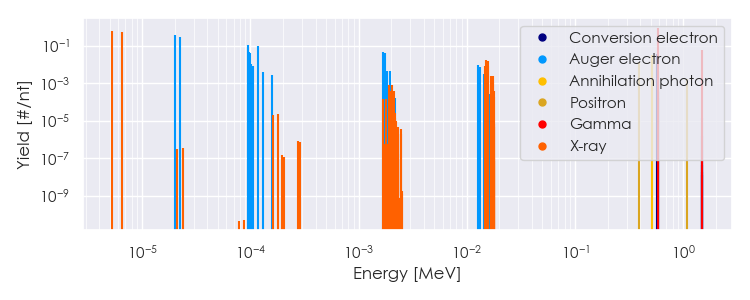 Spectra source: ICRP Publication 107: Nuclear Decay Data for Dosimetric Calculations. Ann. ICRP 2008, 38 (3).